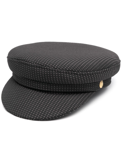Black micro dot cap from MANOKHI featuring micro-dot print, logo-embossed buttons and dropped narrow brim.