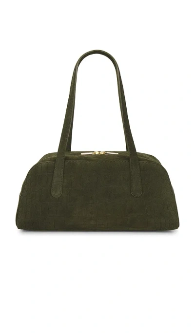 Mansur Gavriel Helios Shoulder Bag in Green. Mansur Gavriel Helios Shoulder Bag in Green. Croc embossed suede exterior with leather lining. Dual top zipper closure. One main compartment. Integrated shoulder straps. Measures approx 13.5 W x 6 H x 6 D Shoulder strap with a 10 drop. MANR-WY83. WF25H183SC.