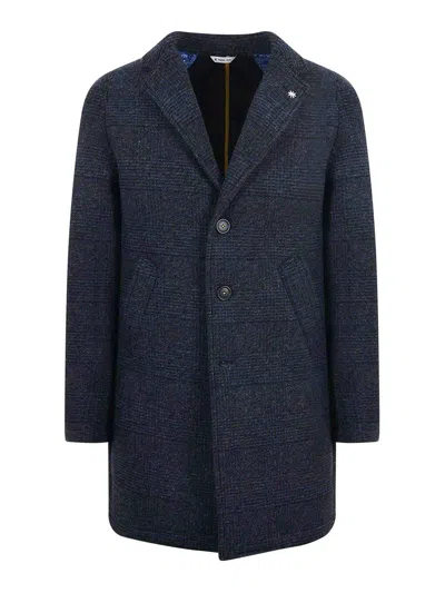 Manuel Ritz coat in wool blend Dark blue Prince of Wales. Neoprene effect. Classic lapel. Inserted pockets. Internal pockets. Closure with 3 buttons. Slit on the back. Unlined. Measurement in photo 48*Import tax/duty will be calculated at checkout (If applicable)