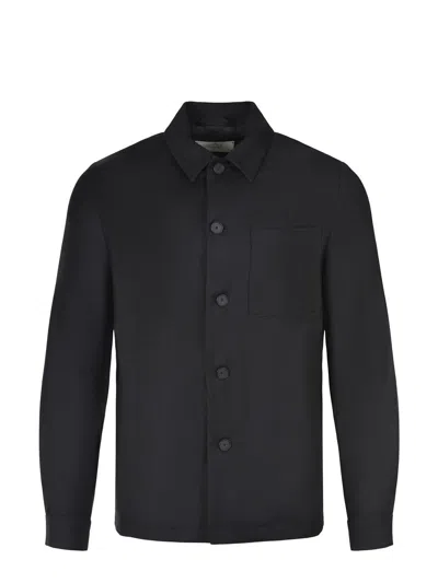 Manuel Ritz jacket made of a wool blend in black. Shirt collar. Long sleeves. Cuffs with button. Button closure at the front. Chest pocket. Side slit pockets.