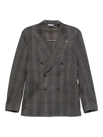 MANUEL RITZ Double-breasted Checked Blazer In Gray