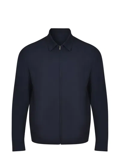 Manuel Ritz jacket made of a wool blend in midnight blue. Shirt collar. Front zip closure. Long sleeves. Cuffs with button. Side pockets. 98% wool 2% elastane.