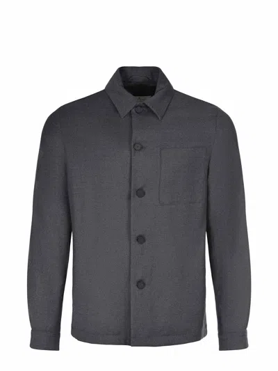 Manuel Ritz jacket made of a wool blend in anthracite gray. Shirt collar. Long sleeves. Buttoned cuffs. Front button closure. Chest pocket. Side welt pockets. 98% wool, 2% elastane