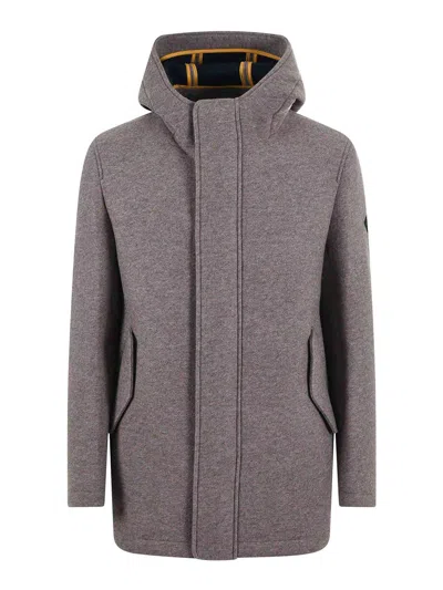 Manuel Ritz jacket in Dove grey neoprene-effect wool blend. Hood. Pockets with snap button. Double slider zip and press stud closure. Internal pocket. Unlined. Measurement in photo 48*Import tax/duty will be calculated at checkout (If applicable)