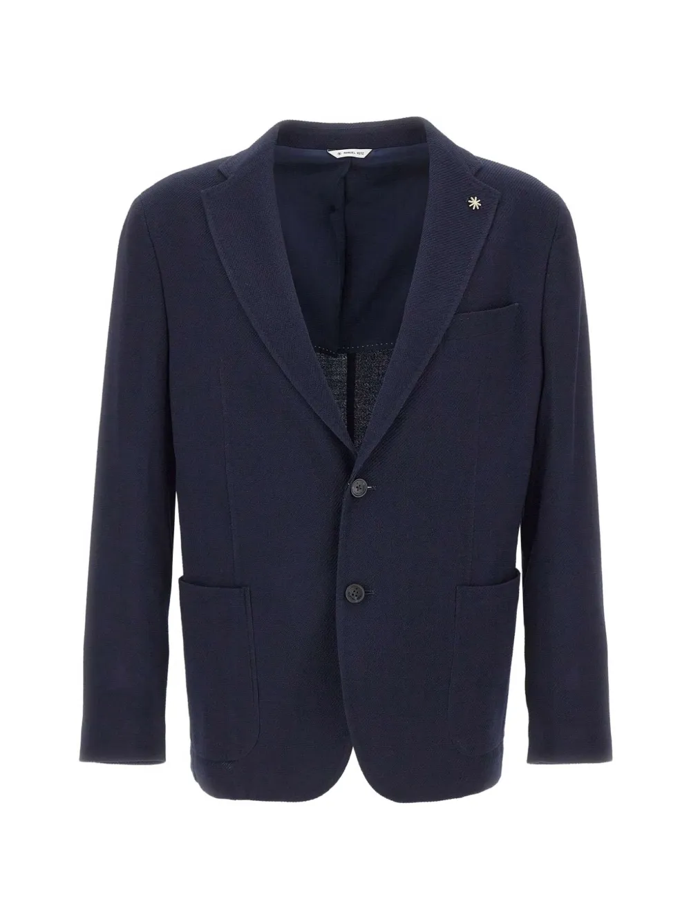 MANUEL RITZ Logo-pin Patch-pocket Blazer In Blue