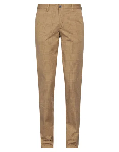 plain weave, no appliqués, glen plaid, mid rise, belt loops, tapered leg, regular fit, 1 button, zipper closure, multipockets, stretch, chinos , Color: Camel , Size: 36