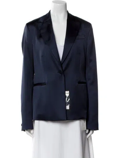 Manuel Ritz Satin Blazer Blue Lace Trim Embellishment & Pointed Collar Slit Pockets & Button Closure Fit: Jackets by Manuel Ritz typically fit true to size. | Manuel Ritz Satin Blazer in Blue, Women's L