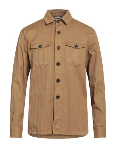 gabardine, brand logo, solid color, classic neckline, long sleeves, buttoned cuffs, button closing, multipockets, stretch, overshirt, small sized , Color: Camel , Size: 42
