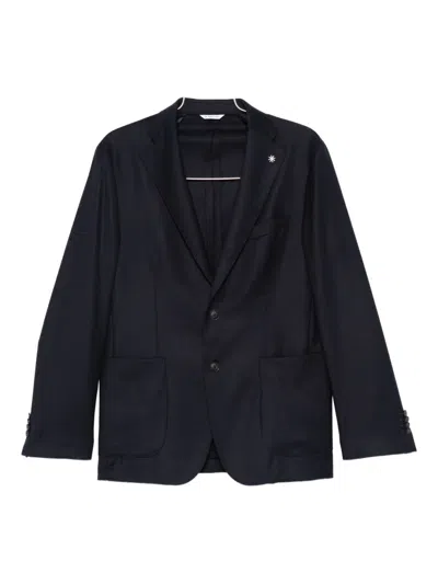 blue wool button fastening patch pockets chest welt pocket buttoned cuffs