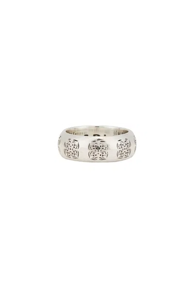 MAPLE Flower Ring in Silver 925 - Metallic Silver. Size 10 (also in 11, 9). 925 sterling silver with engraved floral detail. Made in Indonesia. MPLX-ML42. MPLSS25-48. About the designer:
