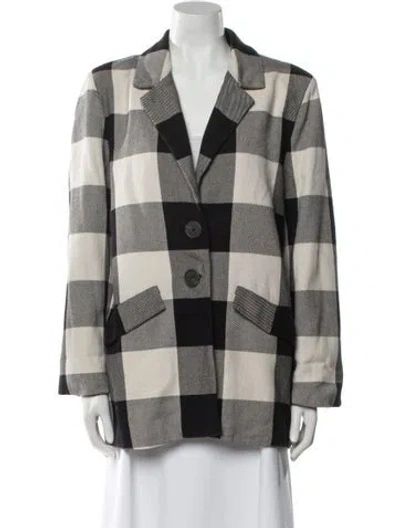 Mara Hoffman Coat Black & White Plaid Print Pointed Collar Short Flap Pockets & Button Closure Fit: Coats by Mara Hoffman typically fit true to size. | Mara Hoffman Plaid Print Coat in Black/White, Women's M
