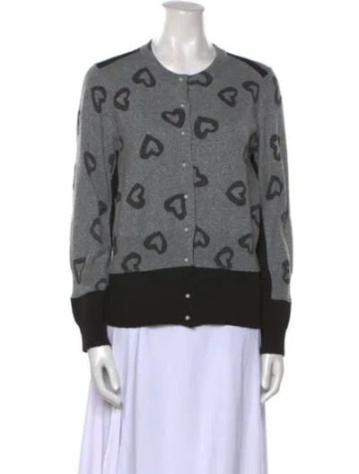 Marc by Marc Jacobs Wool Cardigan Black & Grey Printed Long Sleeve with Crew Neck Button Closure at Front Fit: Knitwear by Marc Jacobs typically fit true to size. | Marc by Marc Jacobs Wool Printed Sweater in Black/Grey, Women's L