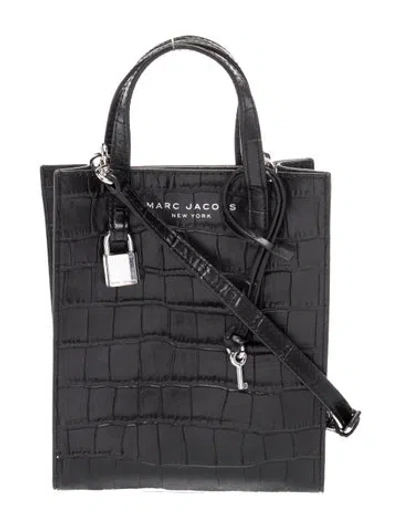 Marc Jacobs Top Handle Bag Black Embossed Leather Silver-Tone Hardware Faille Lining Open Top | Marc Jacobs Embossed Leather Top Handle Bag in Black