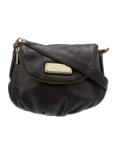 Marc Jacobs Shoulder Bag Black Leather Gold-Tone Hardware Single Adjustable Shoulder Strap Pleated Accents & Single Exterior Pocket Logo Jacquard Lining & Three Interior Pockets Zip Closure at Front Unfortunately, due to restrictions, this item may not be eligible for shipping in all areas. | Marc Jacobs Leather Shoulder Bag in Black