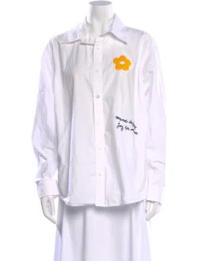 Marc Jacobs Button-Up Top White Long Sleeve with Collar Designer Fit: Tops by typically fit true to size. | Marc Jacobs Long Sleeve Button-Up Top in White, Women's L