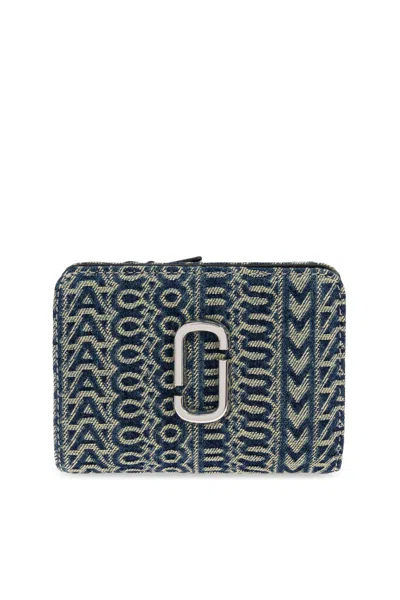MARC JACOBS Mini Monogram Denim Compact Wallet In Blue