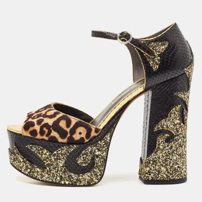 Pre-owned Multicolor Calf Hair And Python Embossed Leather Ankle Strap Sandals Size 38.5