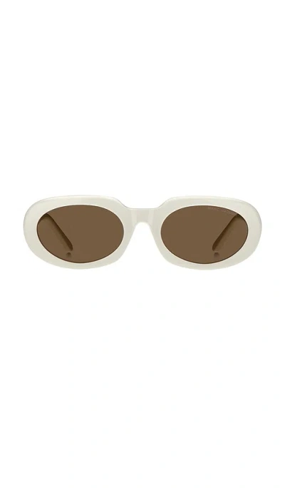 Marc Jacobs Oval Sunglasses in Ivory. Marc Jacobs Oval Sunglasses in Ivory. Acetate frames. Imported. Lens measures approx 53mm. Bridge measures approx 21mm. Arm measures approx 145mm. MARJ-WG19. MARC887GS. For the last 30 years, the Marc Jacobs brand has unapologetically pushed and shaped the boundaries of American fashion. This innovation is driven by Marc Jacobs himself, who continues to be an outspoken force to be reckoned with. In his dream world, we are all the stars of our own movie - and his namesake label provides the tools to define individuality and personality.