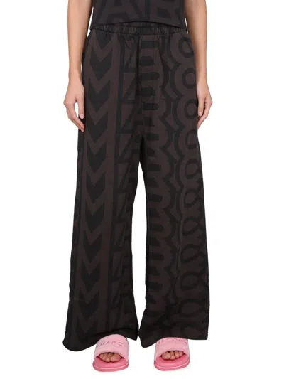 Loop-back cotton jersey sweatpants by Marc Jacobs with all over lettering logo. Elasticated waist, two welt pockets and a rear one, wide leg and oversize fit. The model is 177 cm tall and wears size XS.. Colours. : Brown, Black. Composition. : Cotton. Made in. : Portogallo. MPN. : C447C08RE22. .