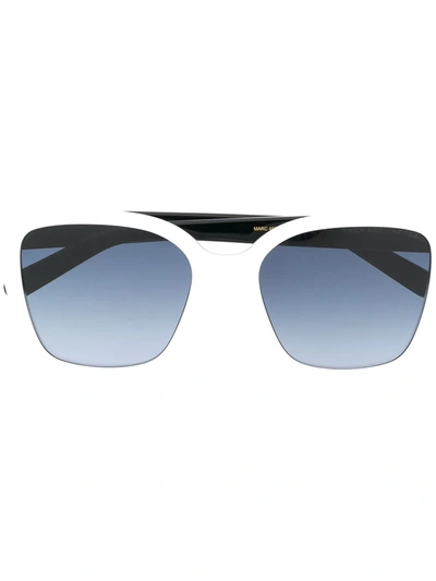 White and black rectangular frame sunglasses from Marc Jacobs Eyewear featuring rectangular frames, straight arms with angled tips, gradient lenses and 100% UVA and UVB protection.