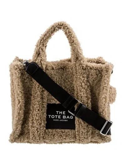 Marc Jacobs Top Handle Bag Neutrals Shearling Graphic Print Silver-Tone Hardware Single Adjustable Shoulder Strap Leather Trim Embellishment Canvas Lining Zip Closure at Top Includes Dust Bag | Marc Jacobs Shearling Top Handle Bag in Neutrals