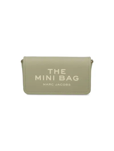 Marc Jacobs The Leather mini bag in green hammered leather with adjustable and removable shoulder strap, jacquard logo detail, magnetic flap closure, embossed logo detail, back logo patch, eight inner card slots, inner flat pocket, single inner compartment. Composition: 100% Leather