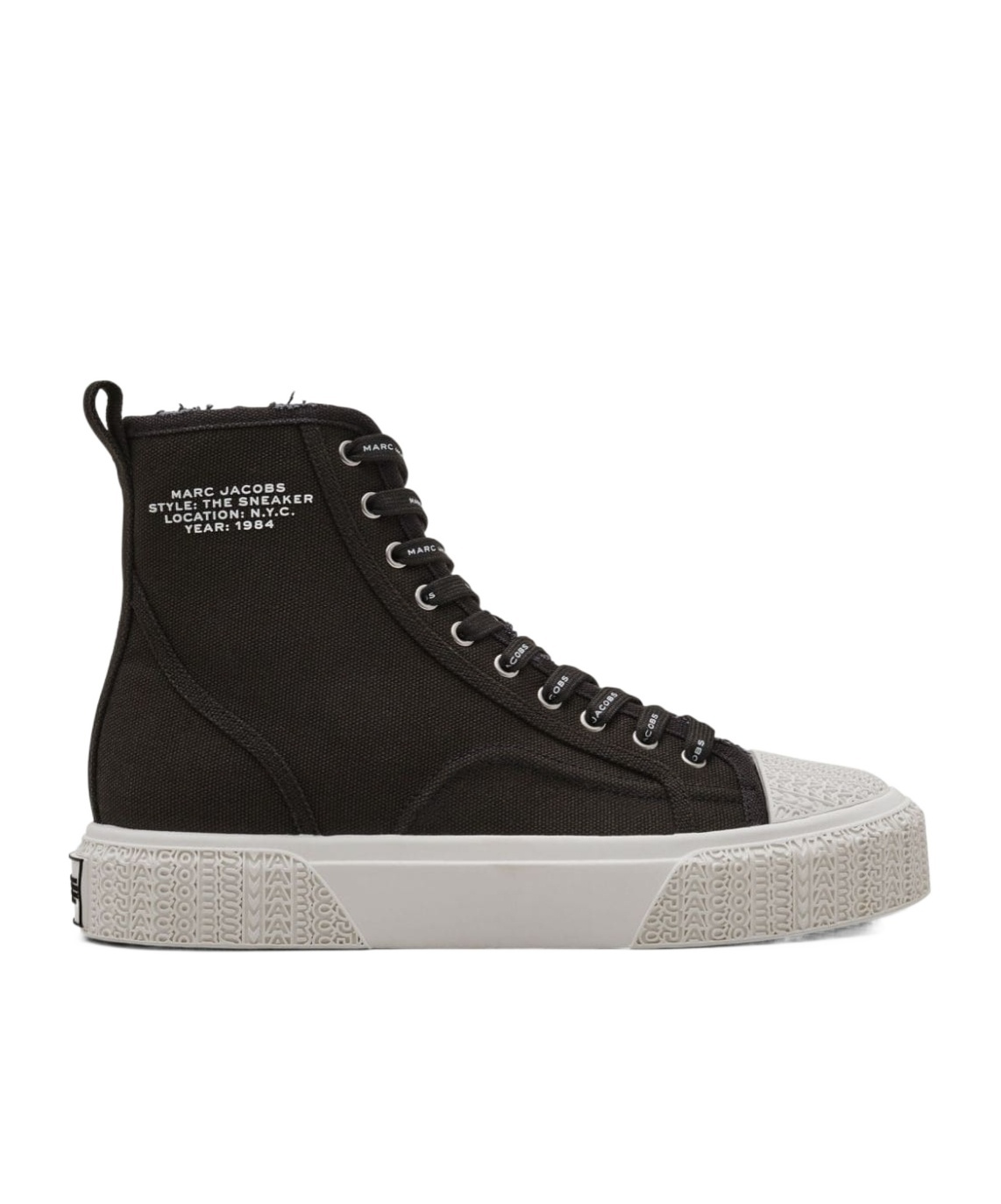 Black canvas upper, used effect on the top, contrasting side logo, contrast logo laces, white rubber toe with tone-on-tone serial logos, tone-on-tone inserts on the side, contrasting logo rubber sole\nSole height 3 cm Composition: 100% cotton