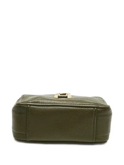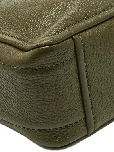 olive leather gold-tone hardware top zip closure detachable strap logo plaque Condition: GOOD. This previously owned and used item is in good condition with minimal signs of use. This may include fading of material or plating and scratches.