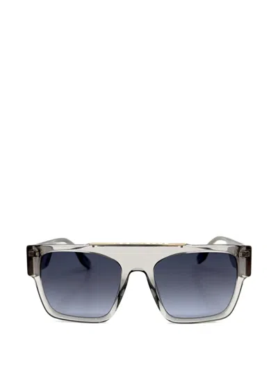 grey blue tinted lenses square frame These glasses come with a protective case.