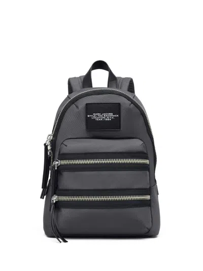 Marc Jacobs "The Biker" medium backpack in gray nylon with leather trim, handle, two adjustable back shoulder straps, double zip closure, front logo patch, two front zip pockets, a single inner compartment. - Trims: 100% leather - Handle span: 9 cm
