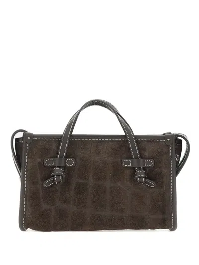 dark brown crocodile-effect texture knotted leather straps top handles zip fastening contrast stitching