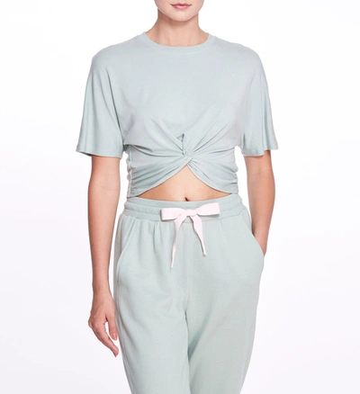 Amelia performance T-shirt from MARCHESA NOTTE featuring sage green, twist detailing, crew neck and short sleeves.