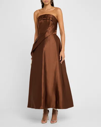 MARCHESA Strapless Draped Double-face Satin Gown In Multi