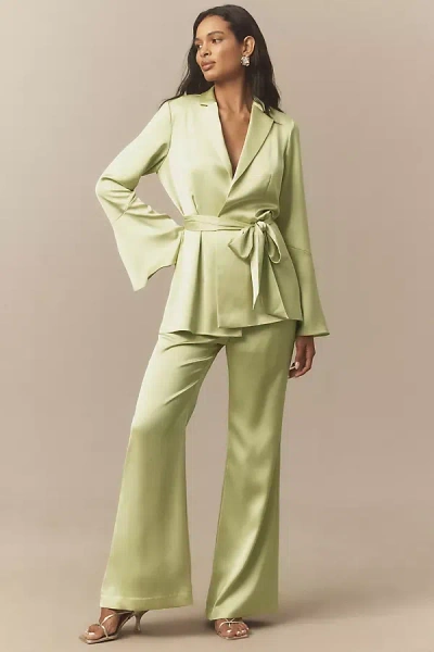 100% polyester Satin fabrication Wide leg Pull-on styling Professionally clean Imported Satin Wide-Leg Pants by Mare Mare in Green, Women's, Size: XL, Polyester/Satin at Anthropologie