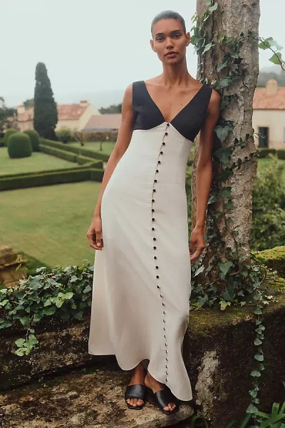 By Mare Mare 85% Viscose, 9% Polyamide, 6% Linen Button front Hand wash Imported V-Neck Button-Front Maxi Dress by Mare Mare in Beige, Women's Size: XL, Linen/Polyamide/Viscose at Anthropologie