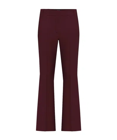 Straight-leg trousers with pleats to elongate the figure, featuring hook and loop fasteners and concealed zippers, a belt loop, slanted side pockets, and pleats at the front and back.