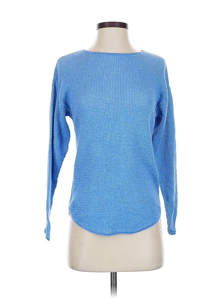 Margaret O'Leary Pullover Sweater, Size: X-Small. Item Details: Blue, Boatneck, 3/4 Sleeve, Women's Tops, 100% Cotton