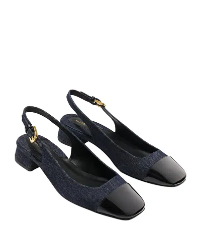 Margaux Women's The Cap-Toe Darcy Slingback Pumps.Color:Indigo Denim and Black Patent.Size:12.5 - Wide.Material:Denim, Nappa, Calf.