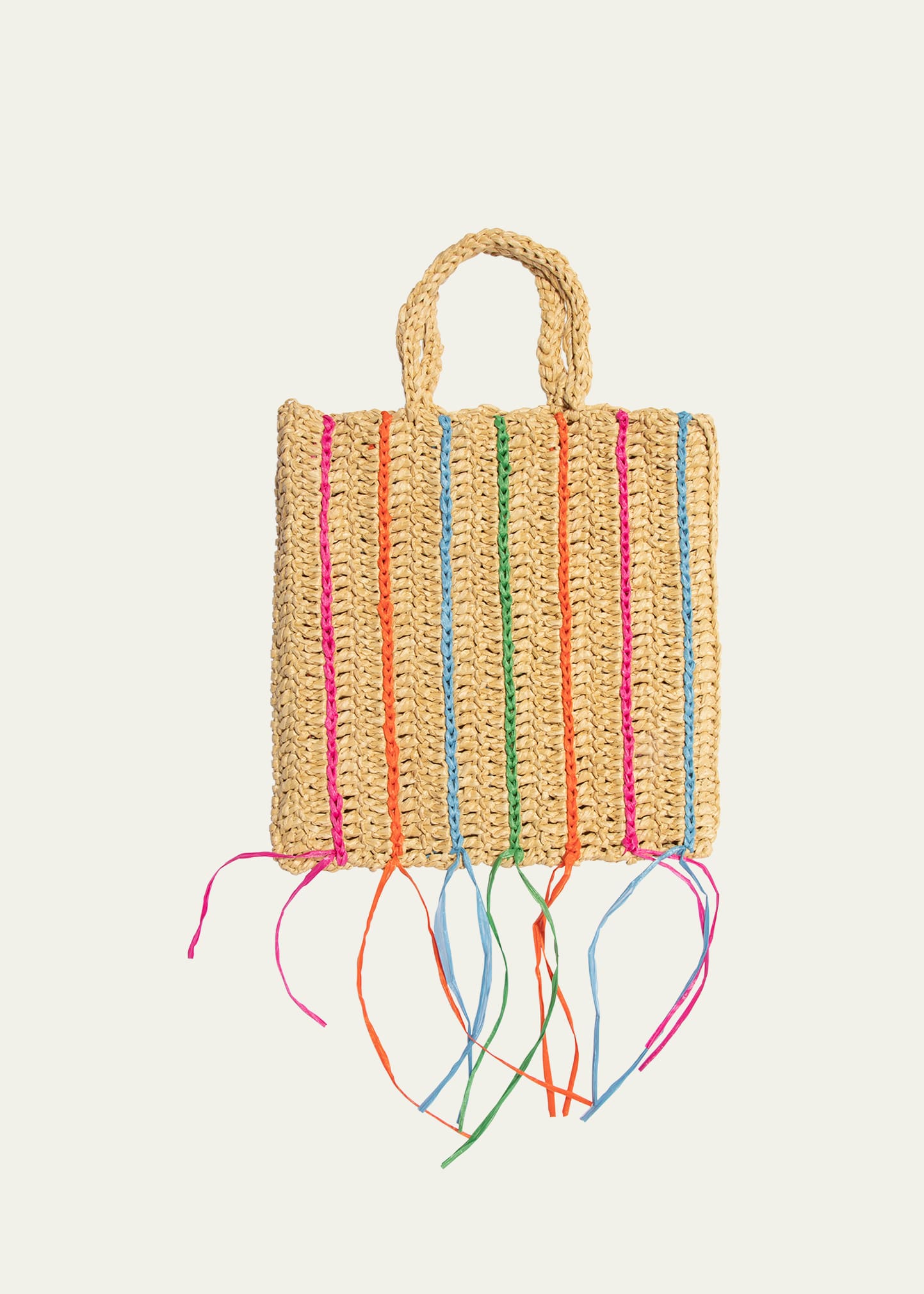 Maria La Rosa "Margherita" raffia-like viscose tote bag with striped multicolor fringe Top handles Lining: Viscose Approx. 12"H x 12"W x 0.7"D Made in Italy