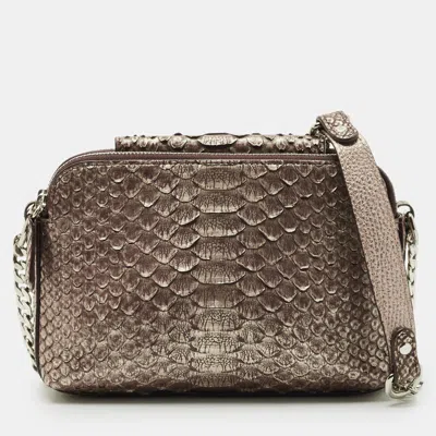 Pre-owned Brown Python Double Zip Crossbody Bag