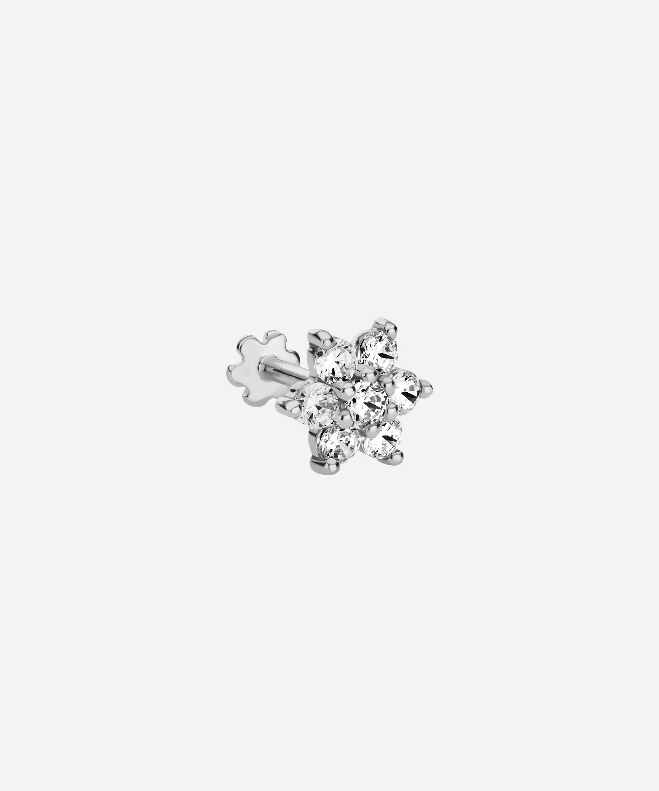 MARIA TASH 18ct 7mm Diamond Flower Single Threaded Stud Earring In White Gold