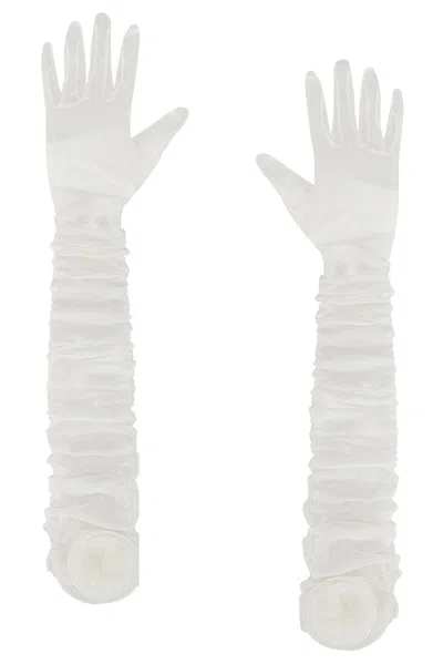 MARIANNA SENCHINA First Date Gloves in White Stretch lace fabric. Made in Ukraine. Fingered gloves. MSNA-WA4. MS/SS25-A-101G. About the designer: