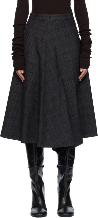 Wool delaine midi skirt. · Check pattern throughout · Integrated dual-hem construction · Pencil skirt at front · Flared skirt at back · Zip closure at back Supplier color: Grey check
