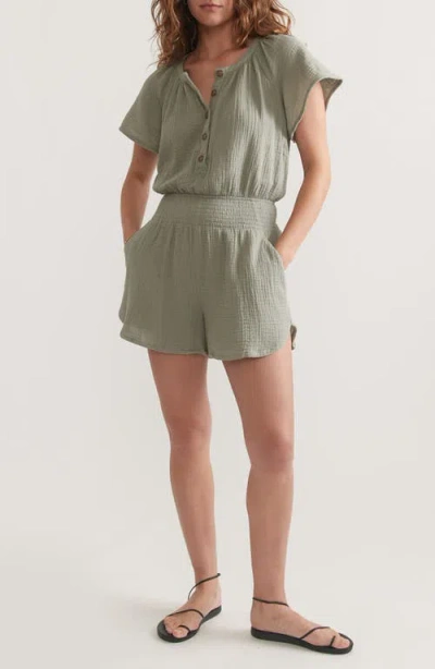 MARINE LAYER Double Cloth Cotton Romper In Shadow