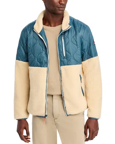 MARINE LAYER Mixed Media Color Block Jacket In Blue/natural