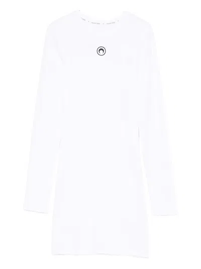 MARINE SERRE Ribbed Jersey Mini Dress With Long Sleeves In White