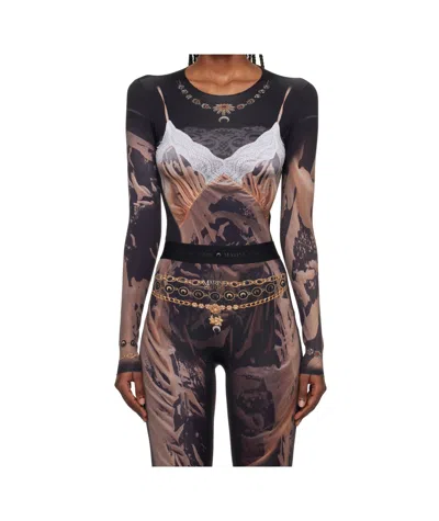 MARINE SERRE Stretch Plain Weave Knit T-shirt In Multi