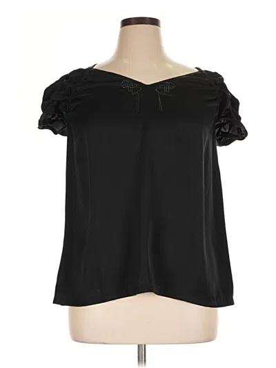 Marithe + Francois Girbaud Short Sleeve Blouse, Size: 48. Item Details: Black, Sweetheart Neckline, Ruffles, Women's Tops, 100% Polyester