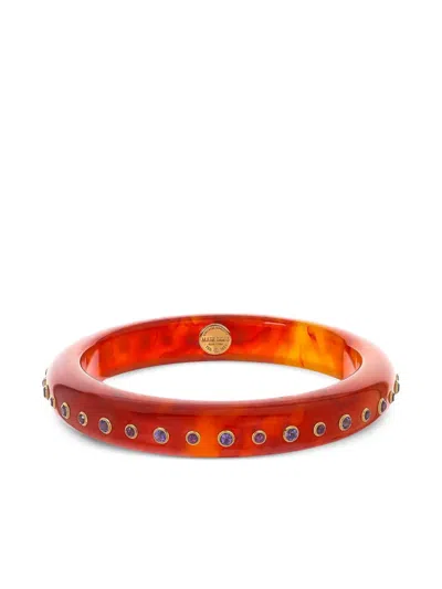 gold-tone/red 18K yellow gold bakelite construction bezel-set round-cut amethyst totalling 1.80 carats and rhodolite granite totalling 1.44 carats stones encircle the bangle polished finish Normal everyday use and external agents may reduce the lustre of gemstones and gold surfaces. To maintain, use specific, non-abrasive products specially meant for cleaning jewellery.