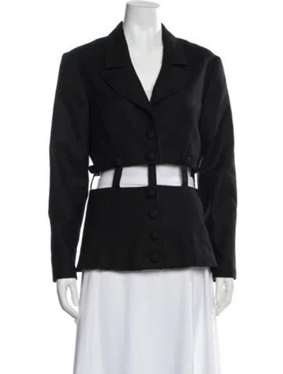 Markarian Wool Blazer Black Printed Pointed Collar Button Closure Fit: Jackets by Markarian typically fit true to size. | Markarian Wool Printed Blazer in Black, Women's US 4 | S
